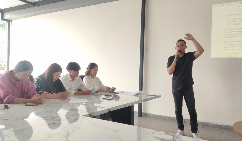 Dalam kesempatan tersebut Ady menjelaskan teknik penulisan berita yang di dalamnya terdapat teknik reportase, bahasa jurnalistik, serta struktur berita, terdiri dari judul berita, teras berita, maupun isi berita dengan memenuhi unsur 5W+1H (What, Who, When, Why, Where, dan How) kepada seluruh peserta pelatihan.