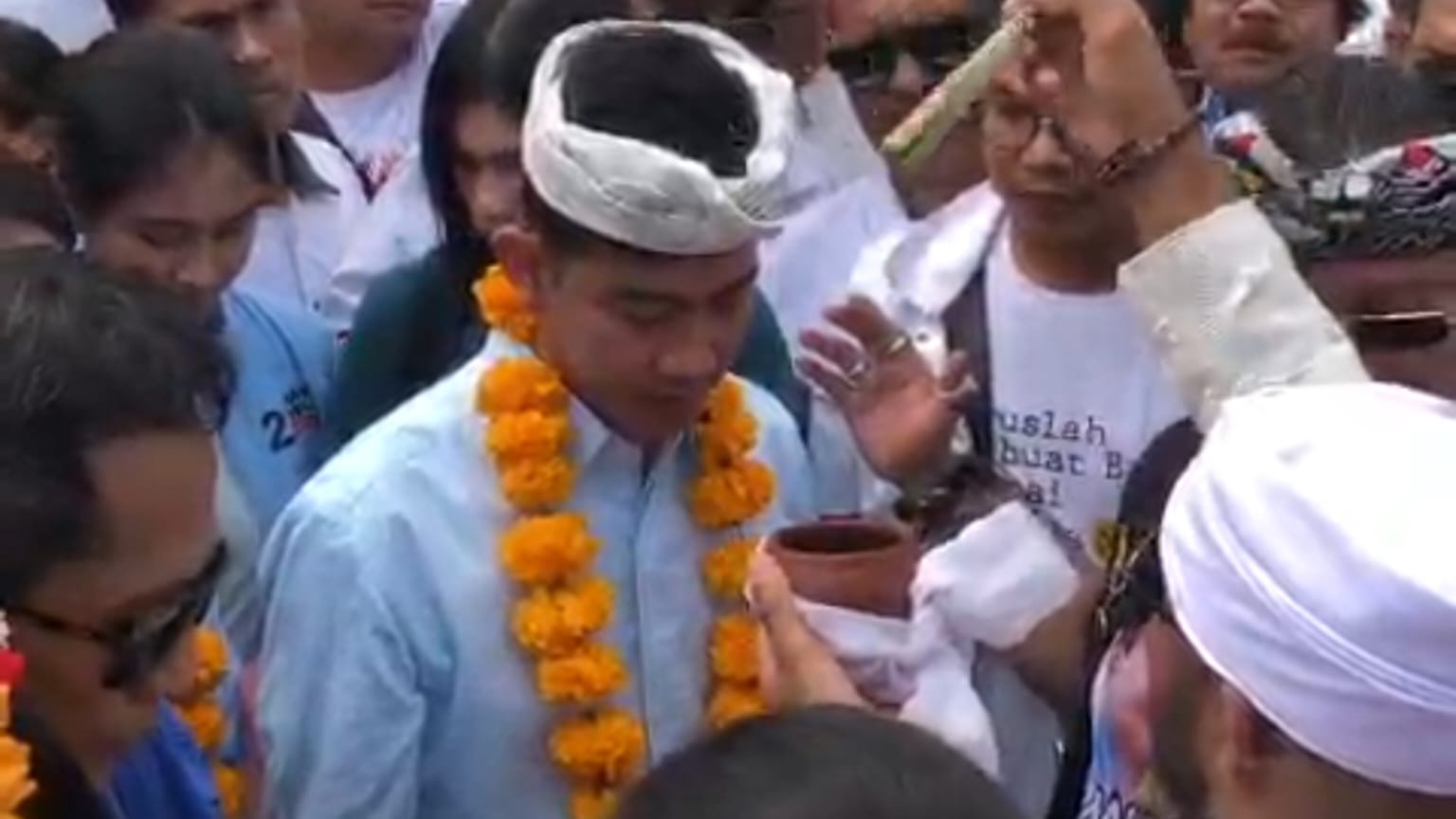 Gibran langsung disambut musik gamelan Bali dan dikalungi bunga gemitir. Dia juga dipakaikan udeng. Gibran didampingi istrinya, Selvi Ananda; Jubir TKN Prabowo-Gibran, Isyana Bagoes Oka; dan Wakil Sekretaris TKN Prabowo-Gibran Aminuddin Ma’ruf.