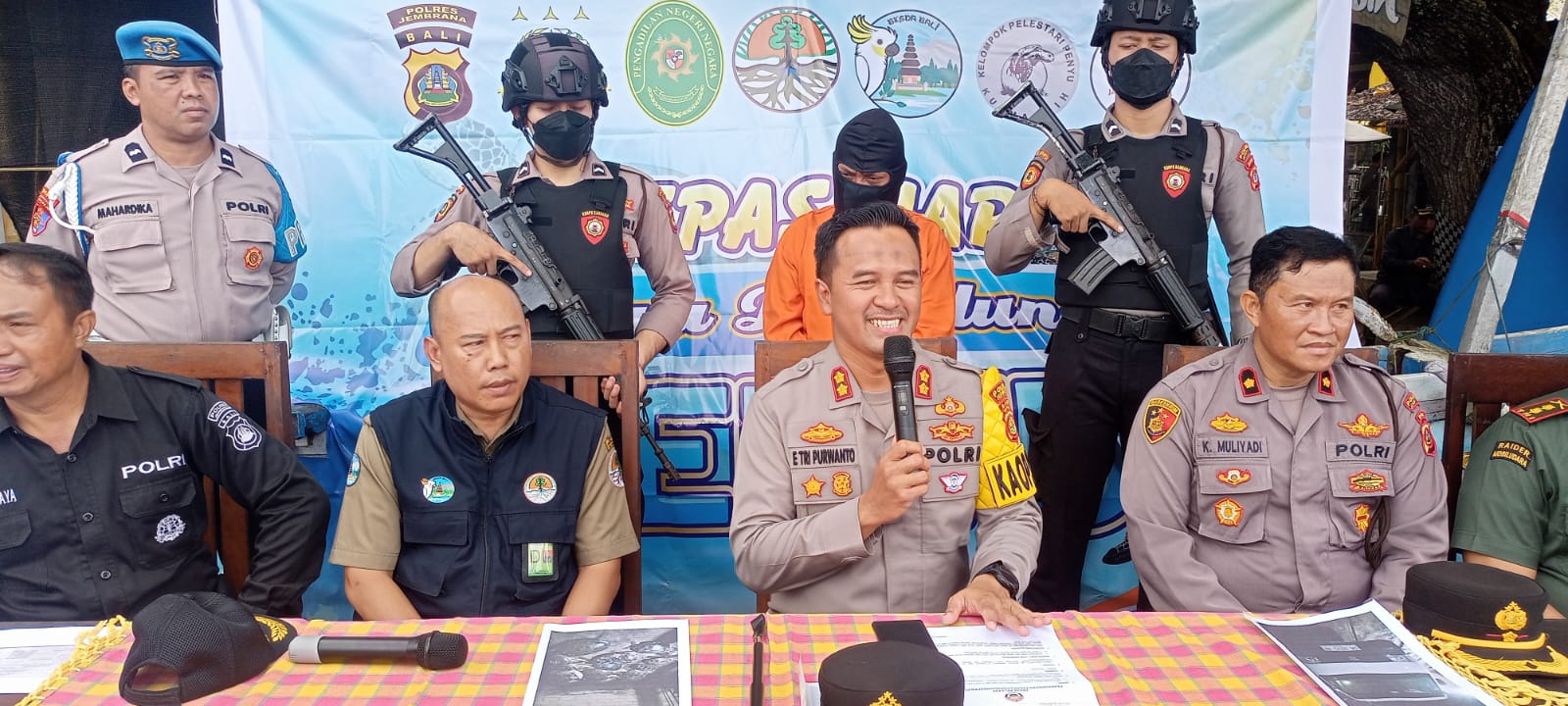 Sebelum dilepasliarkan, Polres Jembrana melaksanakan press release terhadap pengungkapan penyelundupan penyu tersebut. Kapolres Jembrana AKBP Endang Tri Purwanto dalam konferensi persnya mengatakan, pelaku penyelundupan penyu hijau berinisial PE alias Bentir (44) asal Banjar Sari Kuning, Desa Tukadaya, Kecamatan Melaya, Jembrana, sedangkan tersangka utama masih dalam pengejaran.