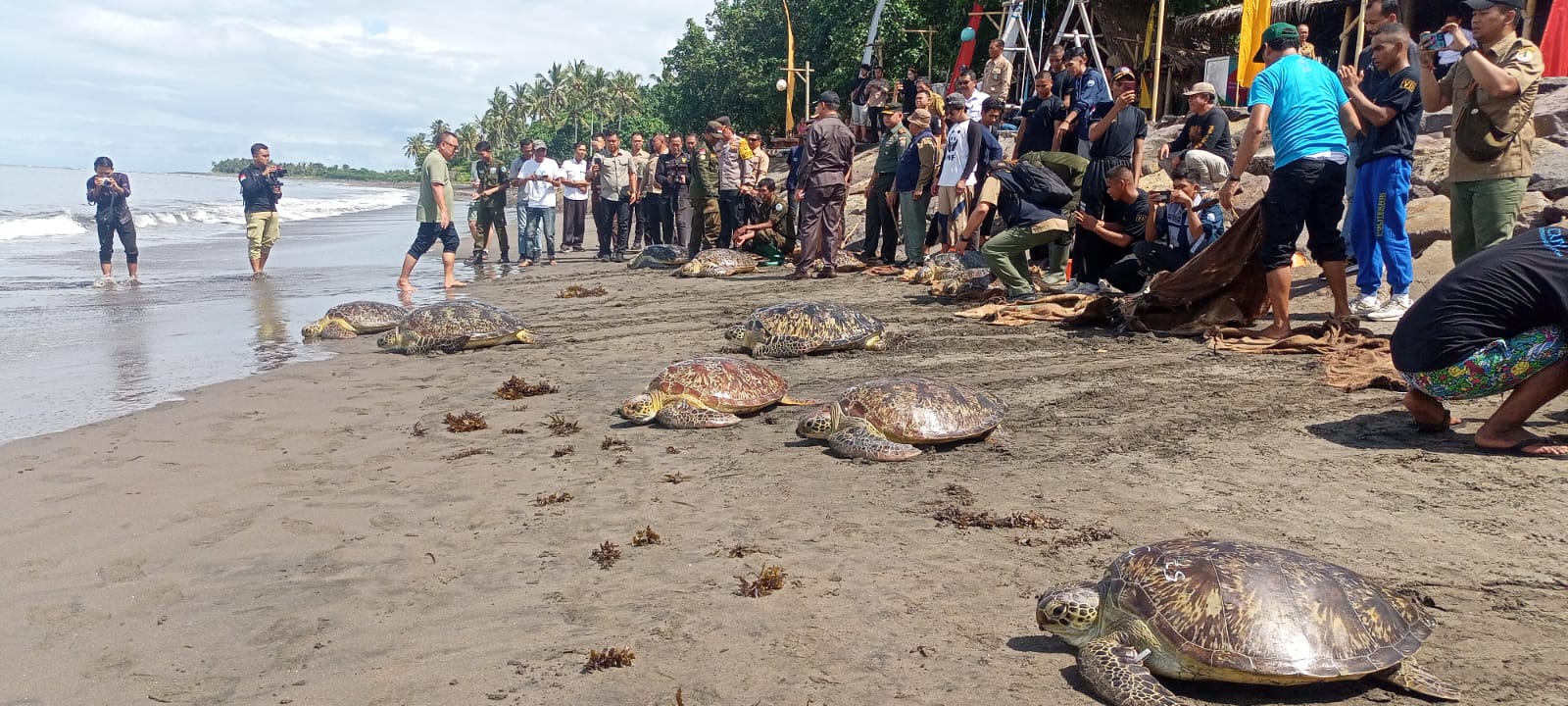 18 Ekor Penyu Hijau Tangkapan Polsek Melaya Dilepasliarkan