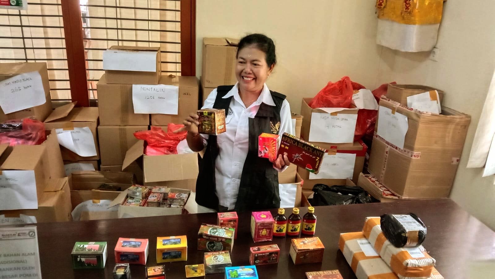 Denpasar – Balai Pengawasan Obat dan Makanan (BPOM) Denpasar menyita 3.799 kotak obat tradisional penambah stamina ilegal dan berbahan kimia berbahaya.