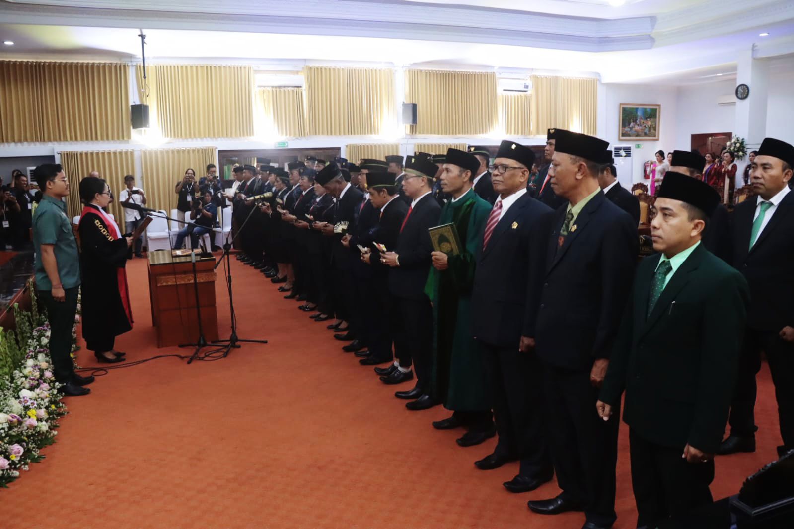 Jembrana – Sebanyak 35 Anggota DPRD Jembrana 2024-2029 dilantik dalam Rapat Paripurna DPRD Jembrana, di ruang rapat utama DPRD Jembrana Selasa (13/8/24).