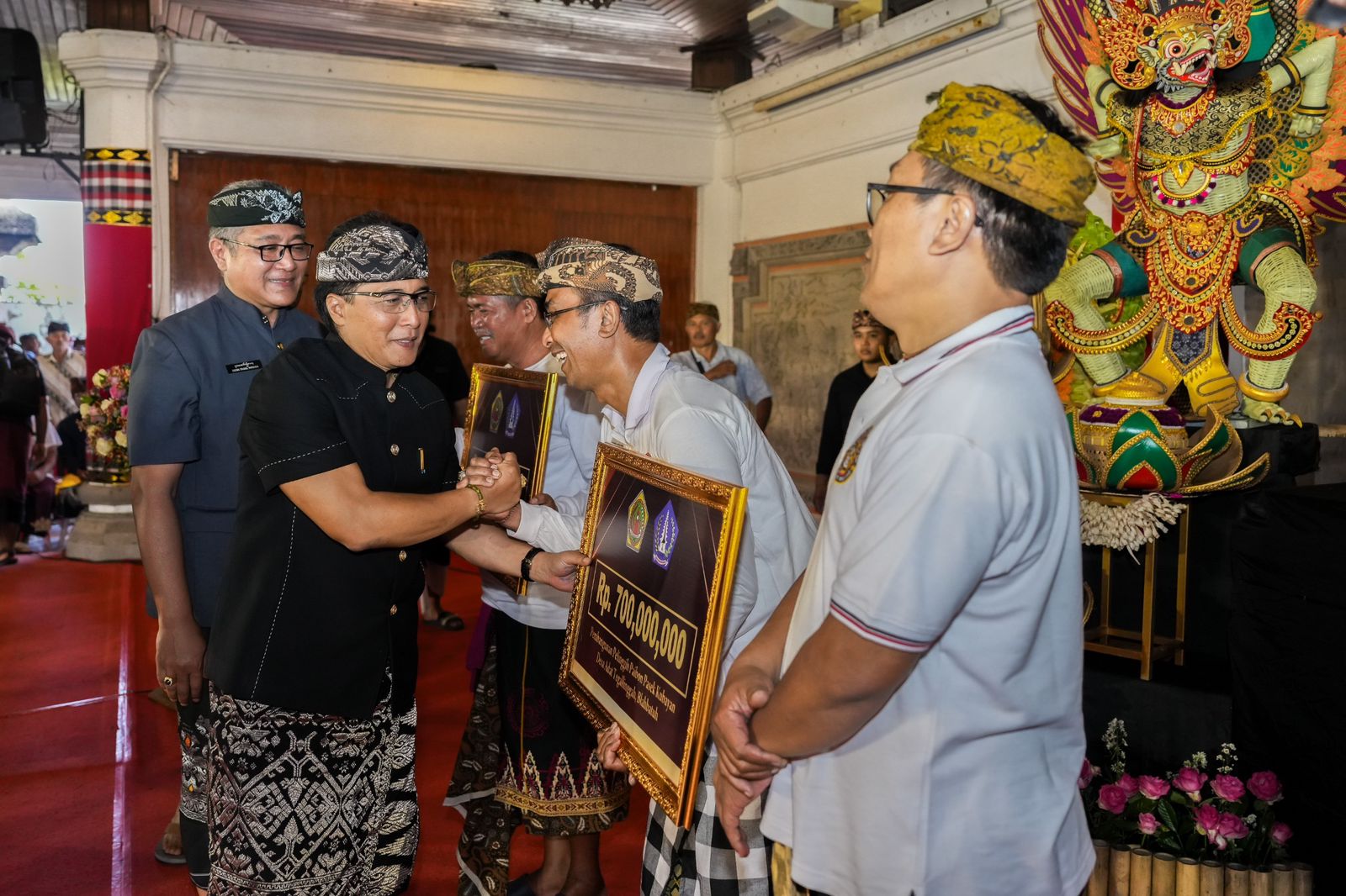 “Meringankan beban masyarakat baik secara pribadi maupun komunal khususnya dalam pembangunan infrastruktur yang berfungsi sosial, adat istiadat, tradisi seni dan budaya sehingga akan mampu meningkatkan kesejahteraan masyarakat secara keseluruhan. Untuk itu saya minta kepada penerima hibah yang bersumber dari dana bantuan ini baik itu dari desa, banjar adat, pemaksan dan sekaa-sekaa untuk mempergunakan bantuan yang diberikan ini dengan sebaik baiknya sesuai dengan apa yang diusulkan serta tetap mengutamakan akuntabilitas dalam pengelolaannya,” jelasnya.