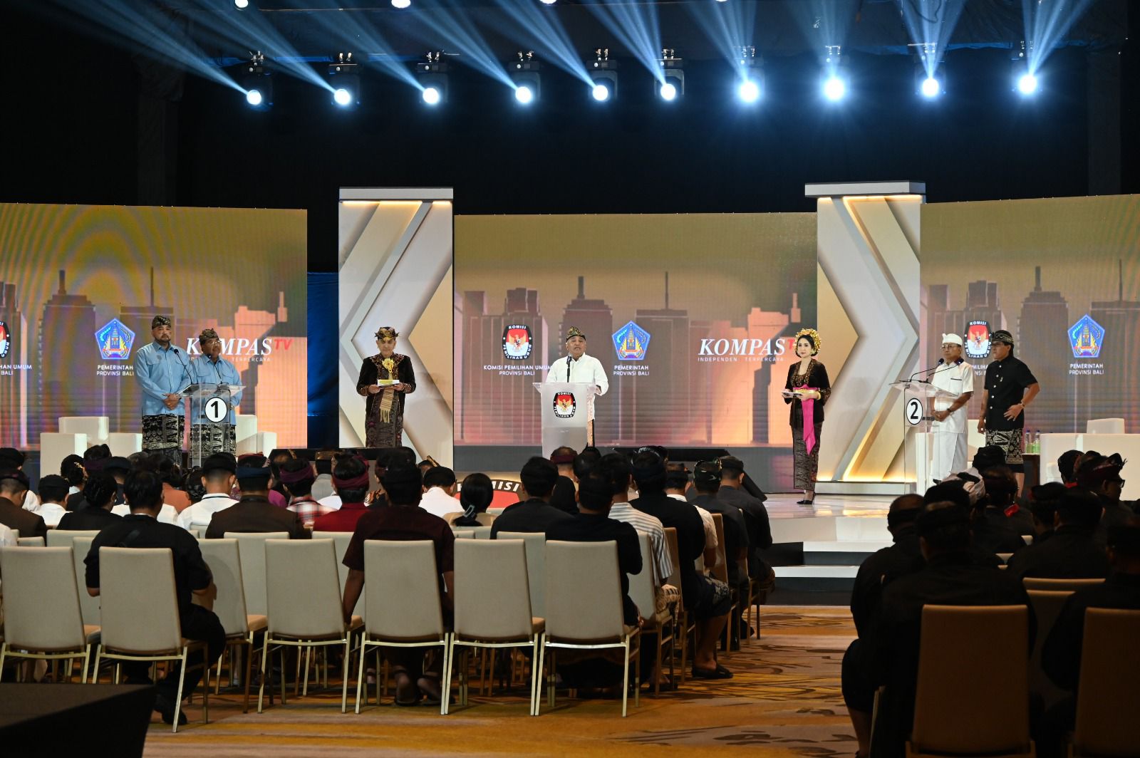 “Kalau sudah ada keputusan yang menjadi kebijakan pemerintah pusat, kami pasangan Koster-Giri akan patuh kepada kebijakan pemerintah pusat untuk melaksanakannya di daerah,” ungkap Wayan Koster saat menjawab pertanyaan paslon Mulia-PAS di debat kedua Pilgub Bali, Sabtu (9/11/2024).