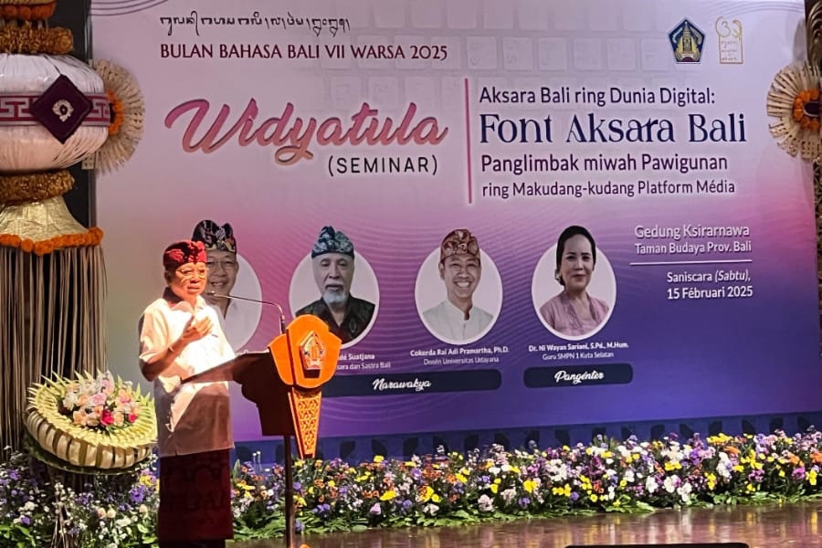 “Saya akan menghilangkan nomenklatur desa wisata. Saya akan ganti dengan nomenklatur desa budaya,” tegas Wayan Koster saat perayaan Bulan Bahasa Bali VII Warsa 2025, di Art Center, Sabtu (15/2/2025).