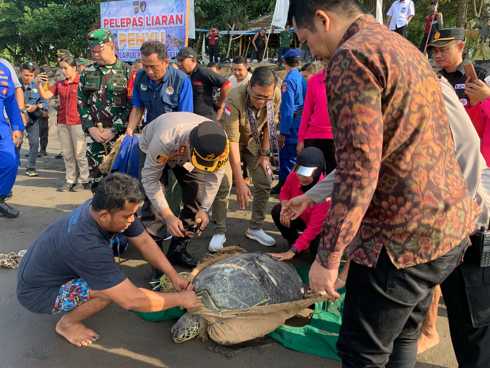 Pelepasanliaran penyu dilakukan oleh Kapolres Jembrana, AKBP Endang Tri Purwanto, Bupati Jembrana I Made Kembang Hartawan, Dandim 1617/Jembrana Letkol Inf M. Adriansyah, serta Kepala Balai KSDA Bali Ratna Hendratmoko.