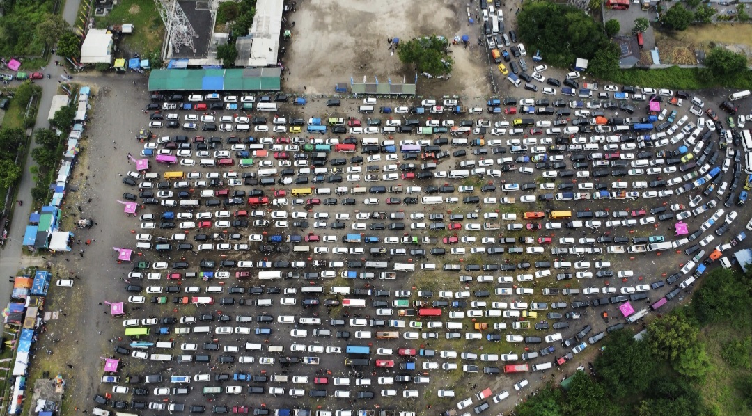 Pantuan di lapangan, kepadatan kendaraan diwarnai oleh kendaraan pemudik yakni sedan sejenis, bus dan, kendaraan barang atau truk.