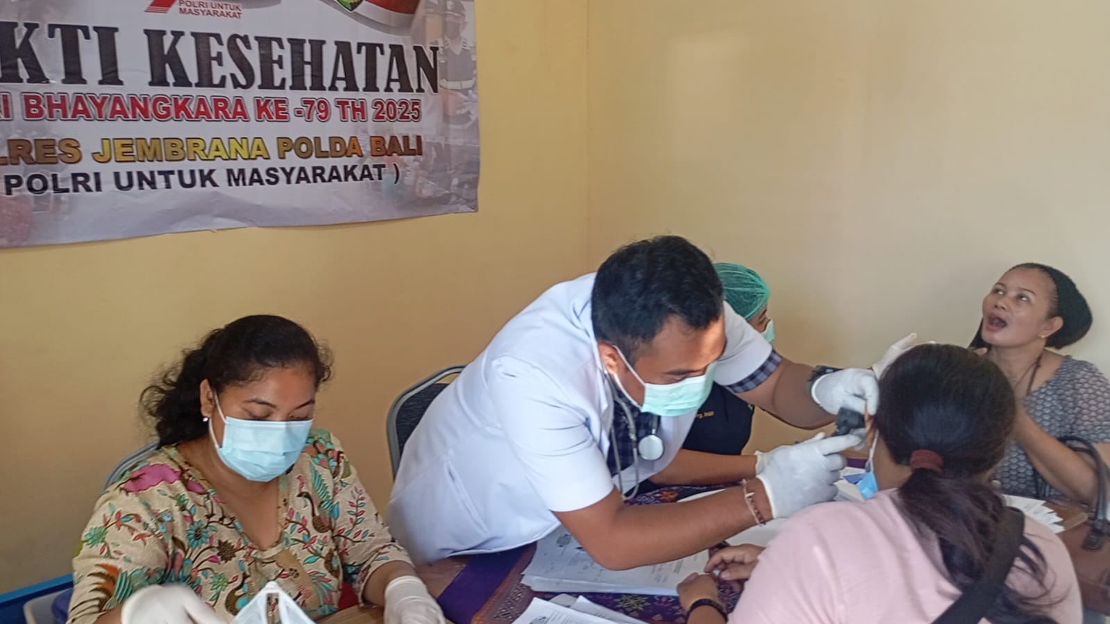 Jembrana – Menyambut Hari Bhayangkara ke-79, Polres Jembrana menggelar pemeriksaan kesehatan massal di Gedung SPPG Polres Jembrana, Kamis 12 Juni 2025. Pemeriksaan kesehatan menyeluruh termasuk skrining Tuberkulosis (TBC) dan Hepatitis B diikuti oleh puluhan warga.