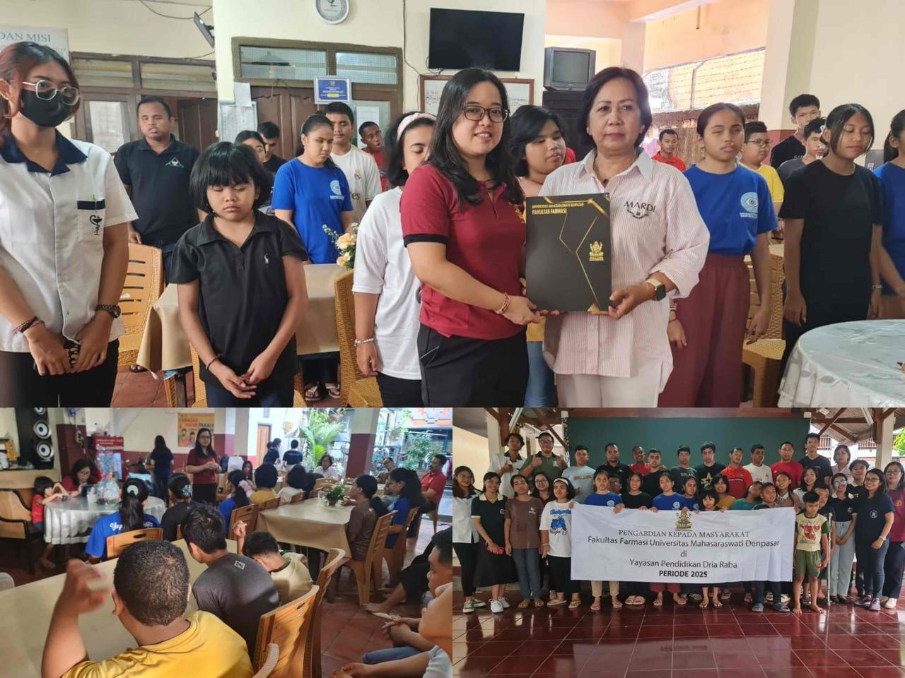 Denpasar – Tim pengabdian kepada masyarakat Fakultas Farmasi Universitas mahasaraswati Denpasar melaksanakan kegiatan pengabdian kepada masyarakat di Yayasan Pendidikan Dria Raba. Kegiatan ini bertemakan “Cegah Pneumonia dan Diare”. Kegiatan ini dilaksanakan di Yayasan Pendidikan Dria Raba yang berlokasi di Kota Denpasar.