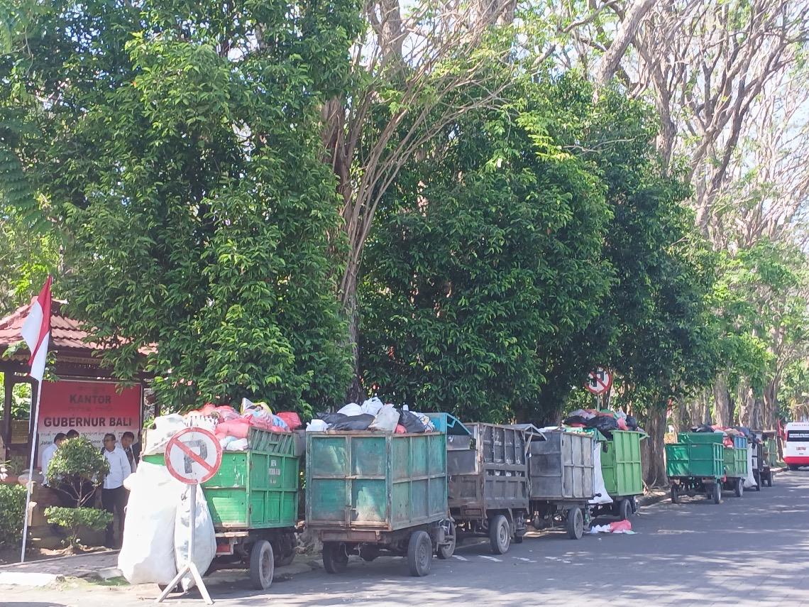 Kesulitan Buang Sampah, Tukang Sampah Parkir Mocin Depan Kantor Gubernur Bali