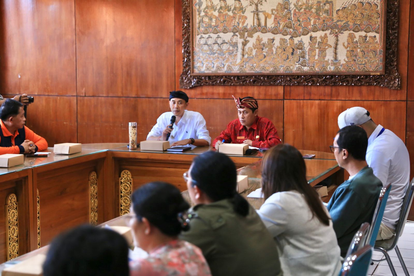 Rapat dipimpin Wakil Bupati Klungkung, Tjokorda Gde Surya Putra didamping Kadis Kominfo I Wayan Sudiarsa, Kalak BPBD Klungkung, Putu Widiada, Kepala Dinas PUPRPKP Made Jati Laksana, para Camat dan perwakilan provider.
