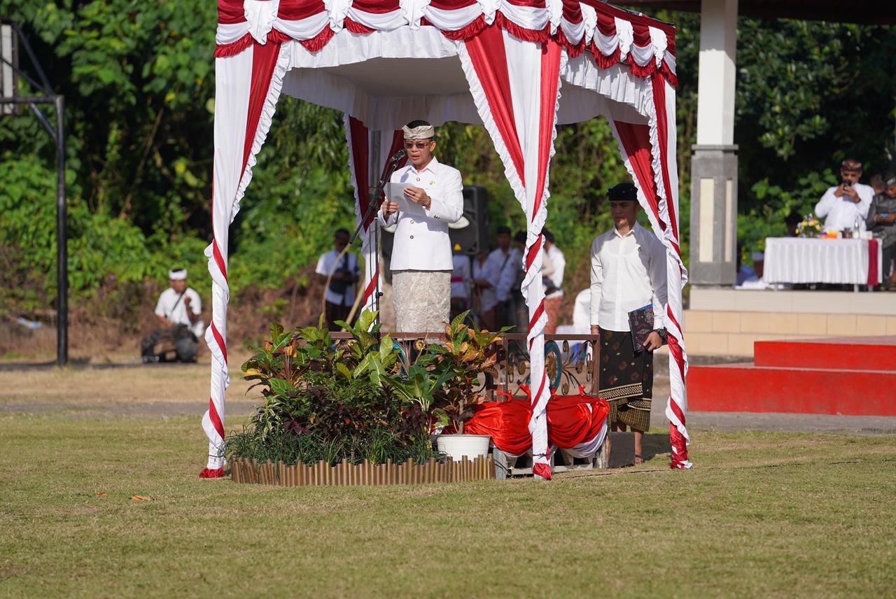 Dalam pidato Gubernur Bali yang dibacakan Bupati Satria, disampaikan ajakan untuk bersyukur atas perjalanan panjang Provinsi Bali sejak berdiri tahun 1958 hingga kini.