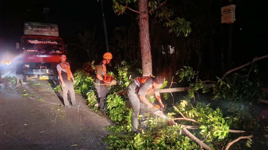 “Pohon perindang jalan jenis Mahoni, tingginya sekitar 10 meter dan diameter 30 centimeter roboh, sempat menghambat arus lalu-lintas karena menutup seluruh badan jalan,” jelasnya saat dikonfimrasi Sabtu siang.