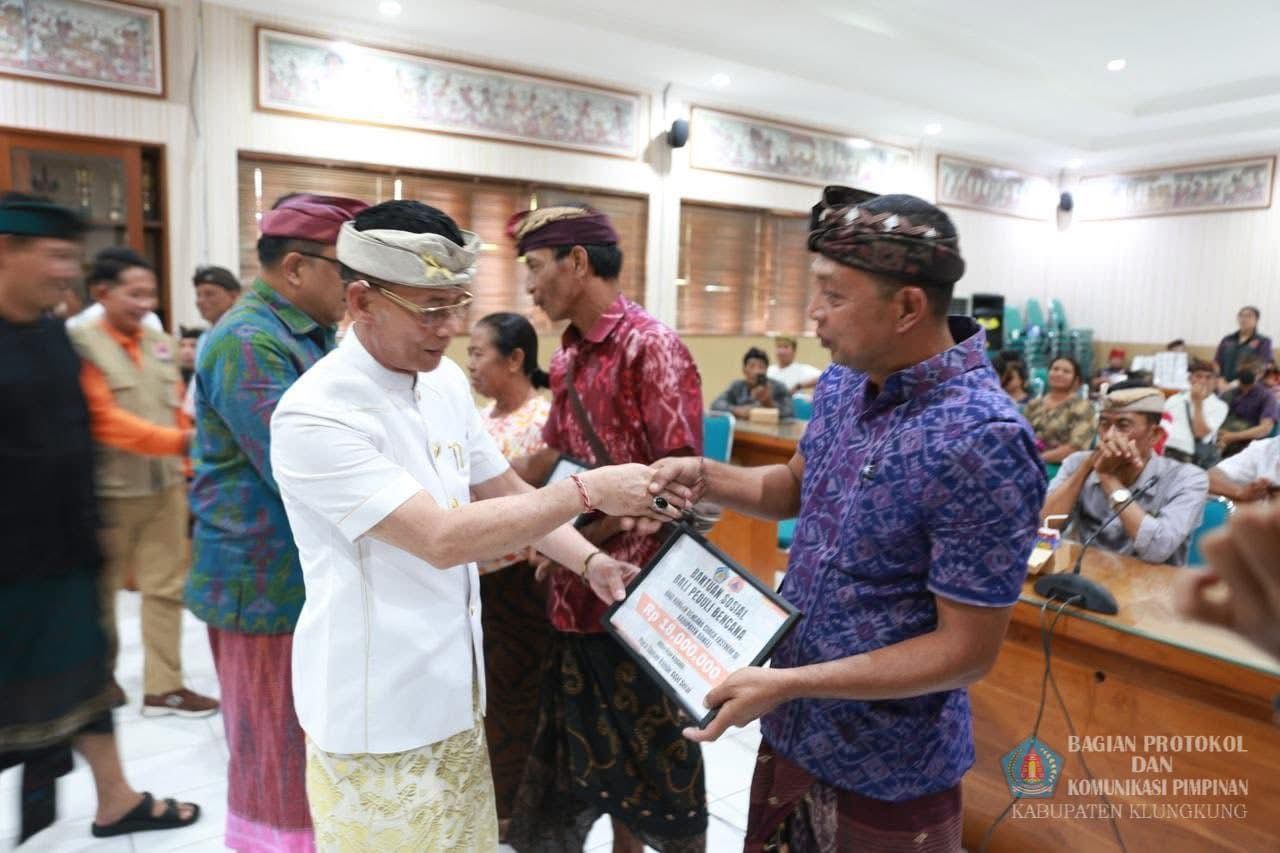 Dalam sambutannya, Bupati Satria menyampaikan apresiasi dan terima kasih kepada Pemerintah Provinsi Bali atas perhatian serta dukungan yang diberikan kepada warga Klungkung. Ia mengungkapkan, bencana cuaca ekstrem yang melanda hampir seluruh wilayah Klungkung pada September lalu menyebabkan banjir di sejumlah titik, terutama di Banjar Pancingan, Desa Kusamba, di mana 124 kepala keluarga sempat mengungsi ke balai banjar maupun rumah kerabat.