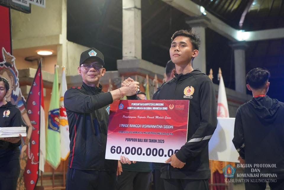 Atlet peraih medali emas perorangan menerima bonus Rp60 juta, perak Rp21 juta, dan perunggu Rp12 juta. “Terima kasih atas dukungan semua pihak. Mari bersama membangun prestasi olahraga Klungkung agar semakin gemilang,” ujarnya.
