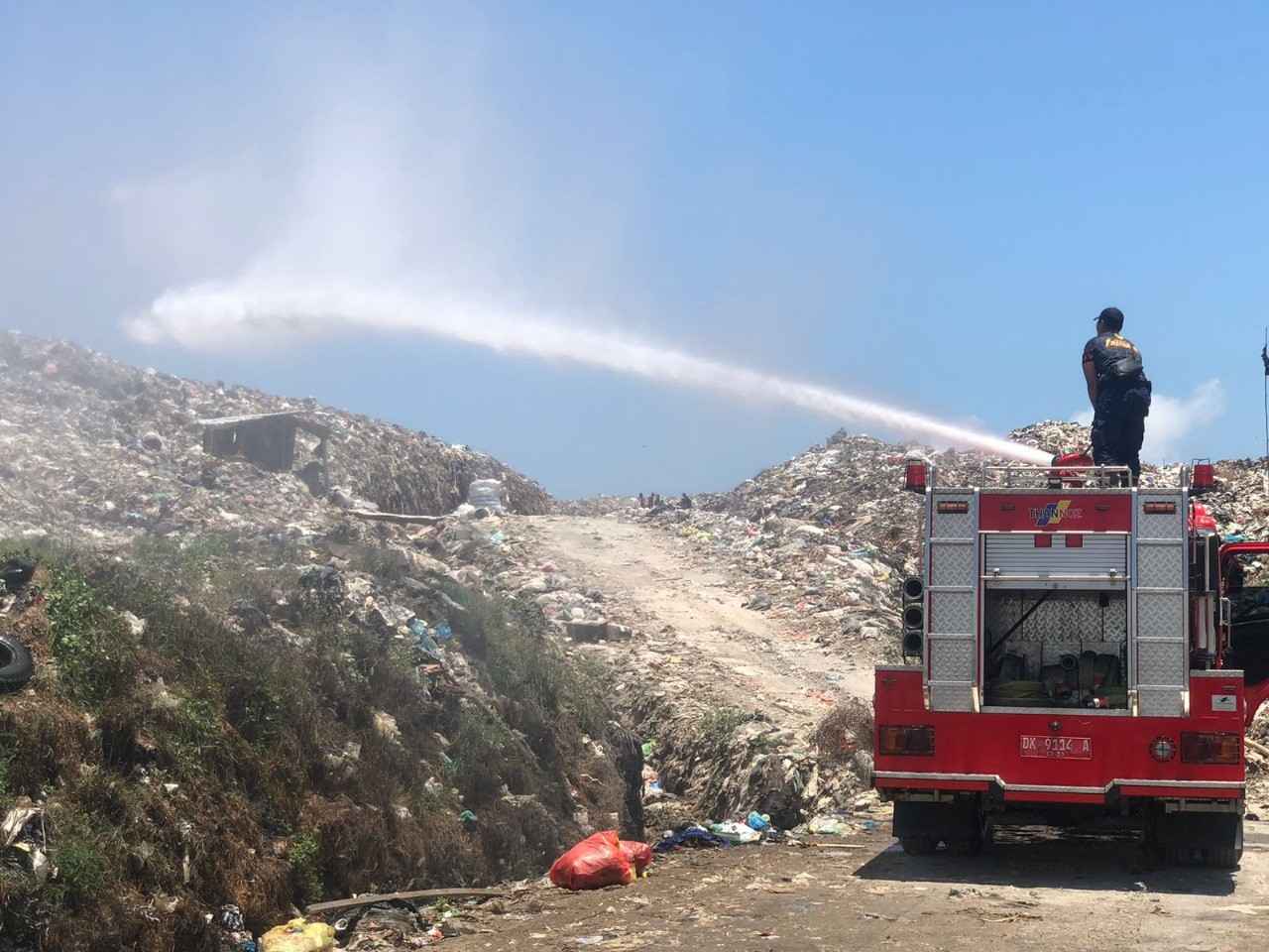 Kepala Dinas Pemadam Kebakaran dan Penyelamatan Kota Denpasar, I Made Tirana, menambahkan pendinginan dilakukan sebagai upaya menjaga stabilitas suhu di area pembuangan.