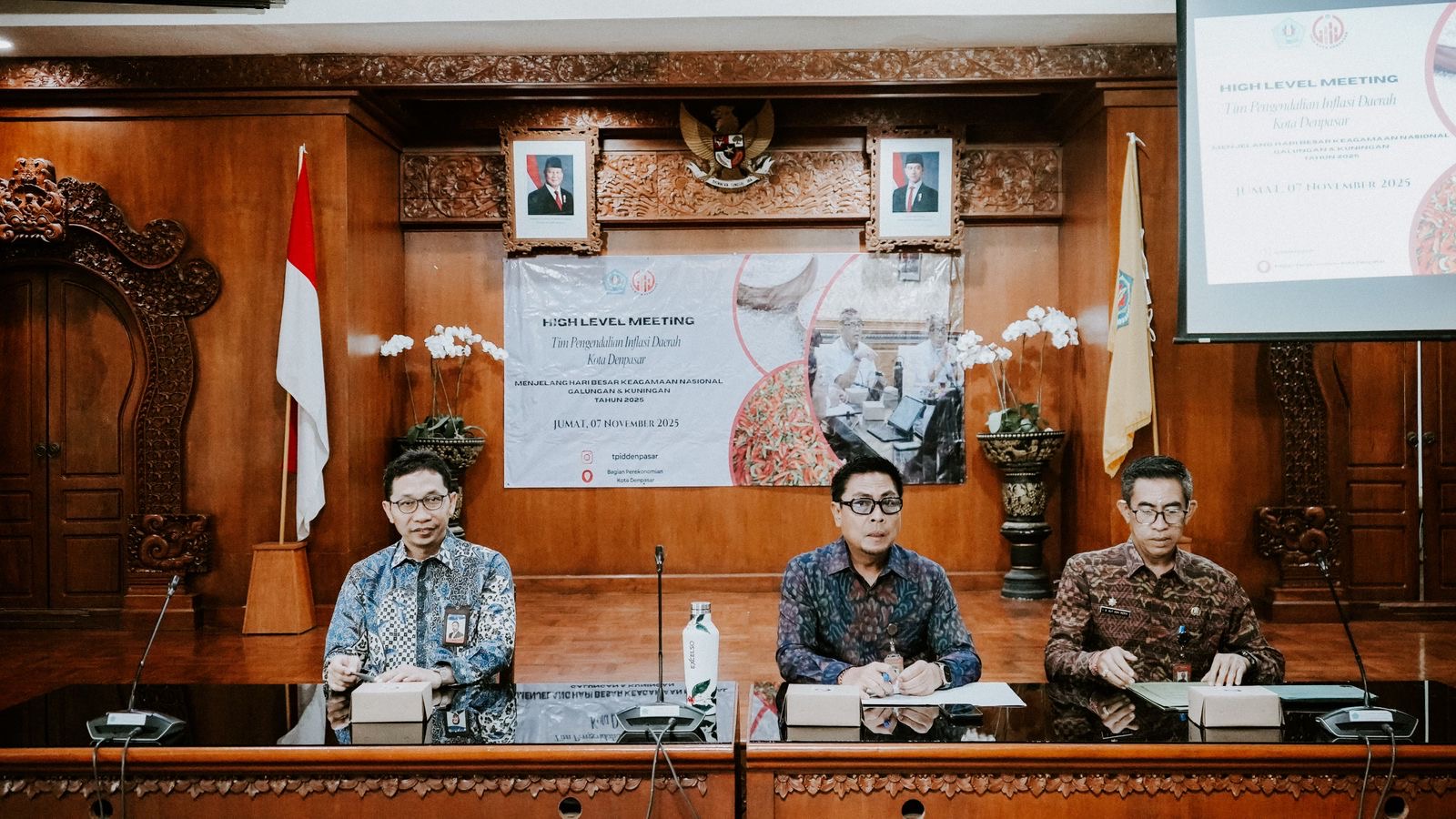 Denpasar – Pemerintah Kota Denpasar terus berkomitmen dalam menjaga stabilitas inflasi menjelang hari besar keagamaan. Kali ini, menjelang Hari Suci Galungan dan Kuningan kembali digelar High Level Meeting (HLM) Tim Pengendalian Inflasi Daerah (TPID) yang dipimpin Wakil Walikota Denpasar, I Kadek Agus Arya Wibawa beserta tim TPID Kota Denpasar di Kantor Walikota Denpasar pada Jumat (7/11).