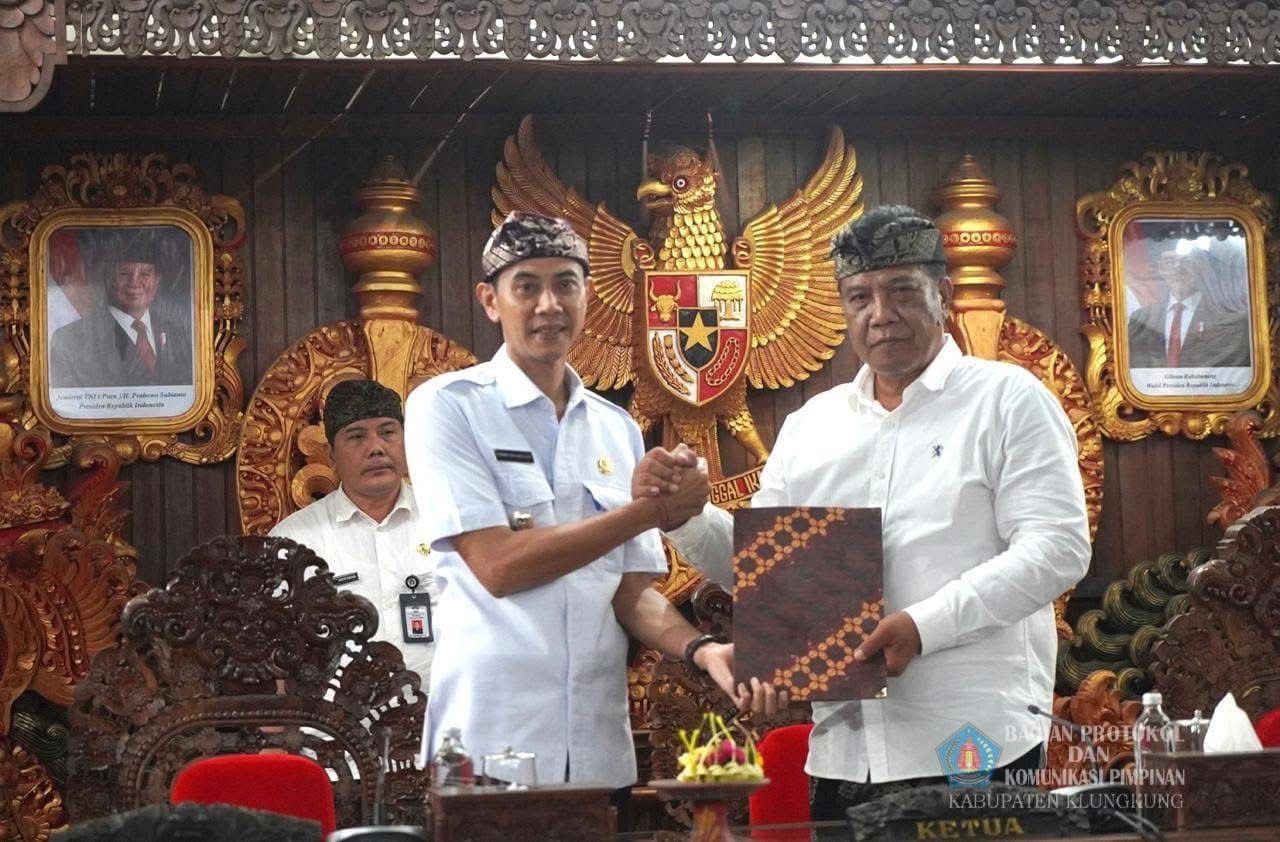 Rapat paripurna tersebut dipimpin Ketua DPRD Klungkung Anak Agung Gde Anom, didampingi Wakil Ketua I Wayan Baru, serta dihadiri para pimpinan OPD terkait.