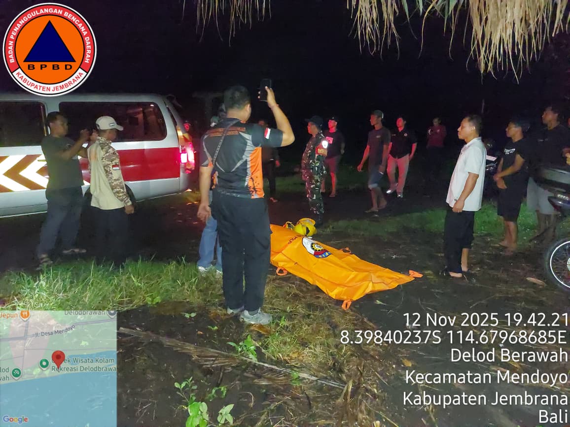 Sekitar pukul 18.33 WITA, salah satu korban, Syahrudy Rizqy Tampu Bolon (46), ditemukan dalam keadaan meninggal dunia di wilayah Timur Kolam Renang Delod Berawah, Desa Delod Berawah, Kecamatan Mendoyo. Jenazah korban kemudian dievakuasi ke RSU Negara.