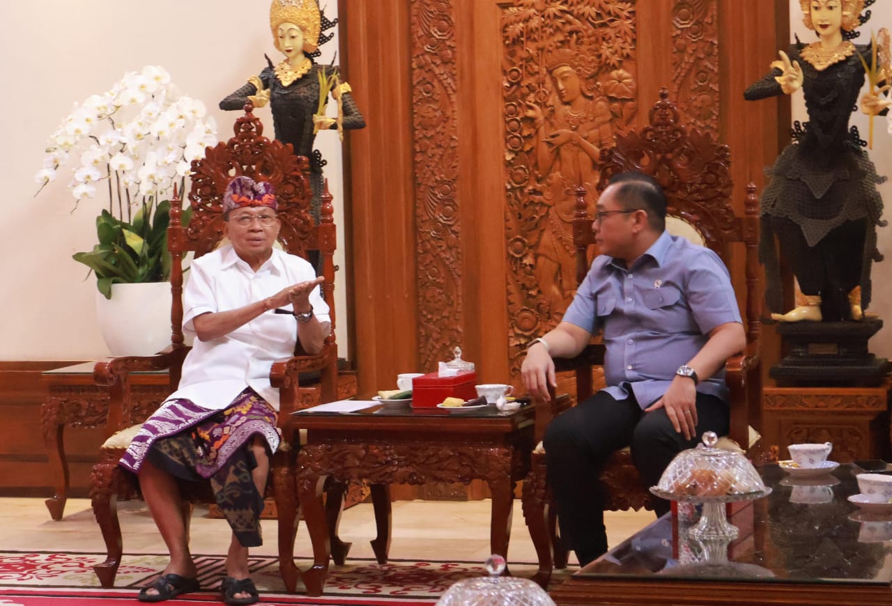 DENPASAR – Gubernur Bali Wayan Koster bertemu Wakil Menteri Investasi dan Hilirisasi/Wakil Kepala Badan Koordinasi Penanaman Modal (BKPM), Todotua Pasaribu, Jumat (14/11/2025).