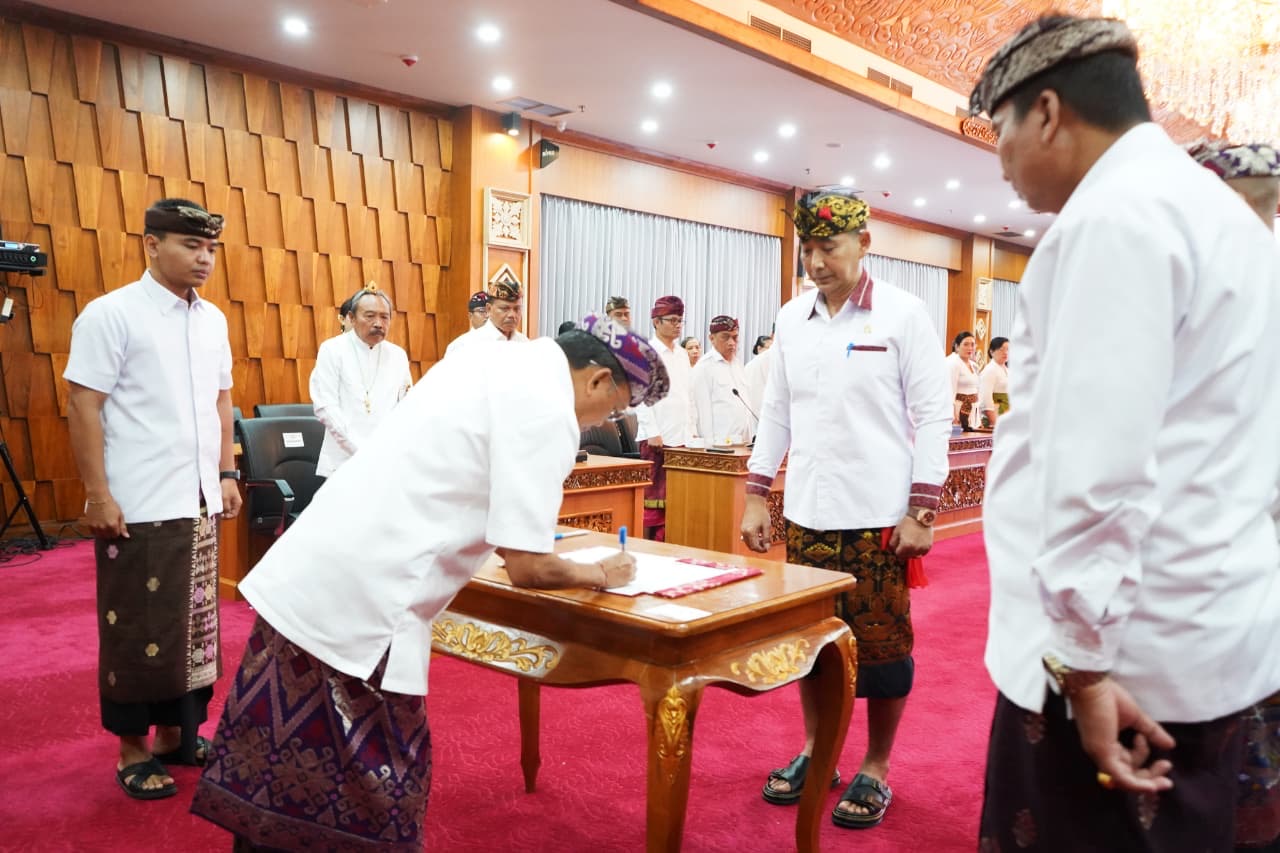 Pelantikan digelar di Ruang Pertemuan Gedung Kerthasabha, Senin (1/12/2025). Wesnawa Punia yang sebelumnya menjabat sebagai Kepala Bidang Pemerintahan dan Pembangunan Manusia pada Badan Perencanaan Pembangunan Daerah Provinsi Bali dipromosikan menggantikan KN. Boy Jayawibawa yang memasuki masa purna tugas.