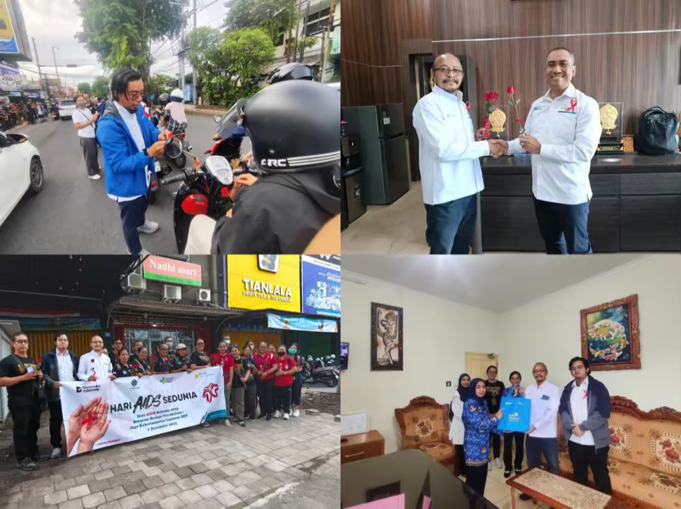 Para pegawai turut mengenakan pita merah sebagai bentuk kepedulian sekaligus komitmen perusahaan dalam menghapus stigma negatif terhadap ODHIV.