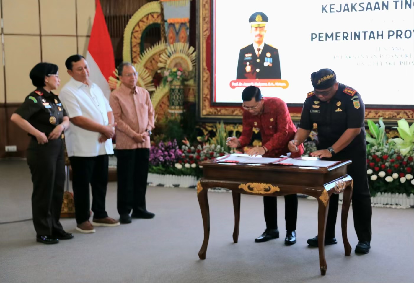 Penandatanganan MoU ini dilaksanakan secara serentak oleh seluruh kepala daerah se-Provinsi Bali dengan Kejaksaan Negeri di masing-masing wilayah. Kegiatan tersebut disaksikan oleh Sekretaris Jaksa Agung Muda Tindak Pidana Umum, Gubernur Bali I Wayan Koster, serta Kepala Kejaksaan Tinggi (Kajati) Bali, Dr. Chatarina Muliana, S.H., S.E., M.H.