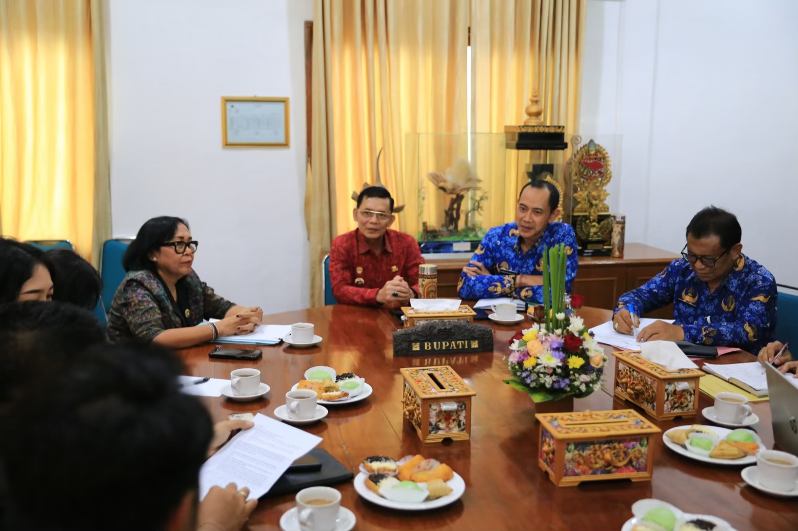 Ikatan Pejabat Pembuat Akte Tanah (IPAAT) diruang rapat kantor Bupati, Rabu (17/12). Kehadiran rombongan yang dipimpin Ketua IPAAT, Gusti Ayu Rupini ini dalam rangka membahas progres pelayanan Bea Perolehan Hak atas Tanah dan Bangunan (BPHTB).