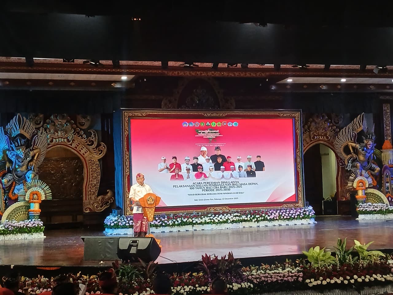 Denpasar – Pelaksanaan haluan pembangunan Bali masa depan, 100 tahun Bali era baru 2025-2125 dimulai dengan peresmian oleh Gubernur Bali, Wayan Koster di Gedung Ksiranawa, Art Center, Senin (22/12/2025) malam.