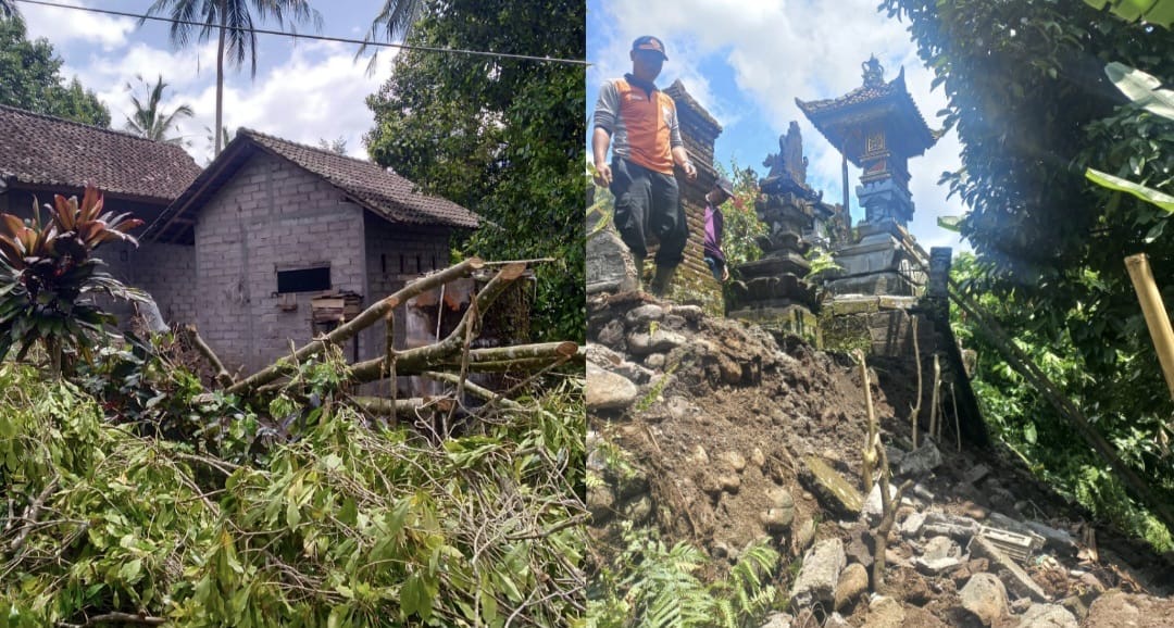 Selain itu, satu kejadian tanah longsor terjadi di Banjar Palungan Batu, Desa Batuagung, Kecamatan Jembrana, pada Sabtu (31/1/26) dini hari. Longsor dipicu hujan intensitas tinggi yang menyebabkan robohnya senderan tembok merajan dengan panjang longsoran sekitar 10 meter dan tinggi kurang lebih 3 meter. Akibat kejadian tersebut, tembok penyengker dan pondasi sanggah mengalami kerusakan dengan total kerugian diperkirakan mencapai ± Rp25 juta.