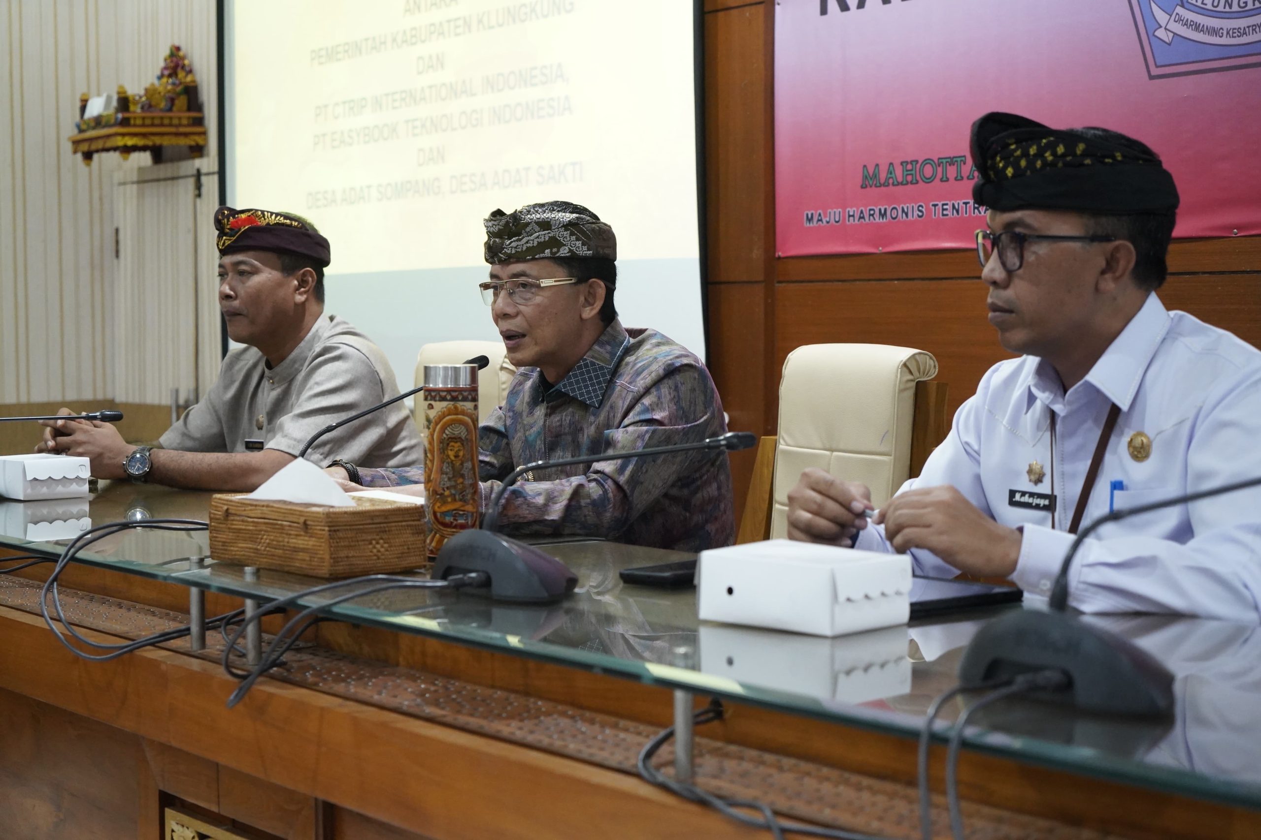 WacanaBali.com,Klungkung – Dalam upaya mewujudkan sistem retribusi yang transparan, akuntabel, dan modern, sekaligus meningkatkan kualitas pelayanan publik serta optimalisasi Pendapatan Asli Daerah (PAD), Pemerintah Kabupaten Klungkung menjalin kerja sama strategis dengan sejumlah pihak. Kerja sama tersebut dilakukan dengan PT Ctrip International Indonesia dan PT Easybook Teknologi Indonesia terkait pemungutan retribusi pelayanan tempat rekreasi, pariwisata, dan olahraga di Kabupaten Klungkung berbasis E-Ticketing dan E-Payment System. Serta kerjasama antara Pemkab Klungkung dengan Desa Adat Sompang dan Desa Adat Sakti