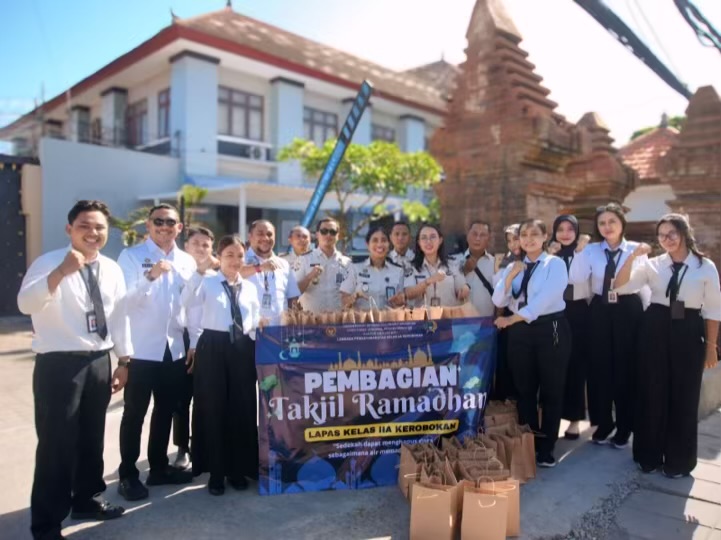 Wacanabali.com, Kerobokan – Lembaga Pemasyarakatan (Lapas) Kelas IIA Kerobokan menggelar aksi sosial Ramadan dengan membagikan ratusan paket takjil gratis kepada masyarakat dan pengguna jalan di depan gerbang utama Lapas, Kamis (5/3/2026). Kegiatan ini menjadi wujud kepedulian dan semangat berbagi di bulan suci Ramadan.