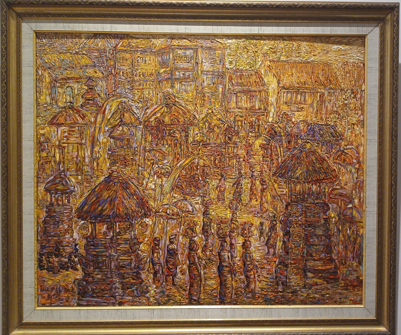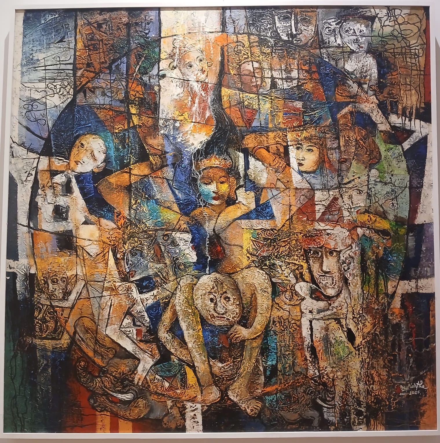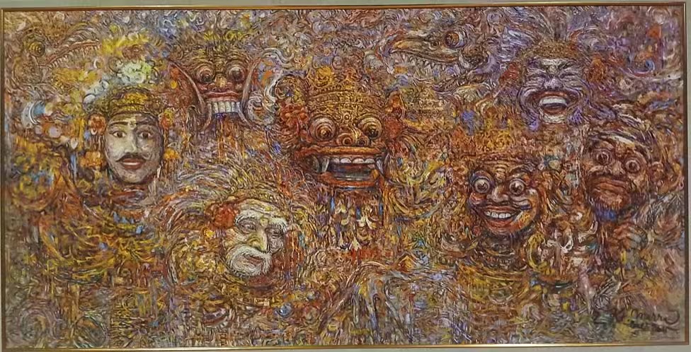 Sementara itu, I Wayan Santrayana menampilkan karakter karya dengan figur dan objek yang deformatis. Gaya ini menjadi bahasa visual yang khas dalam menggambarkan dinamika sosial dan budaya masyarakat Bali.