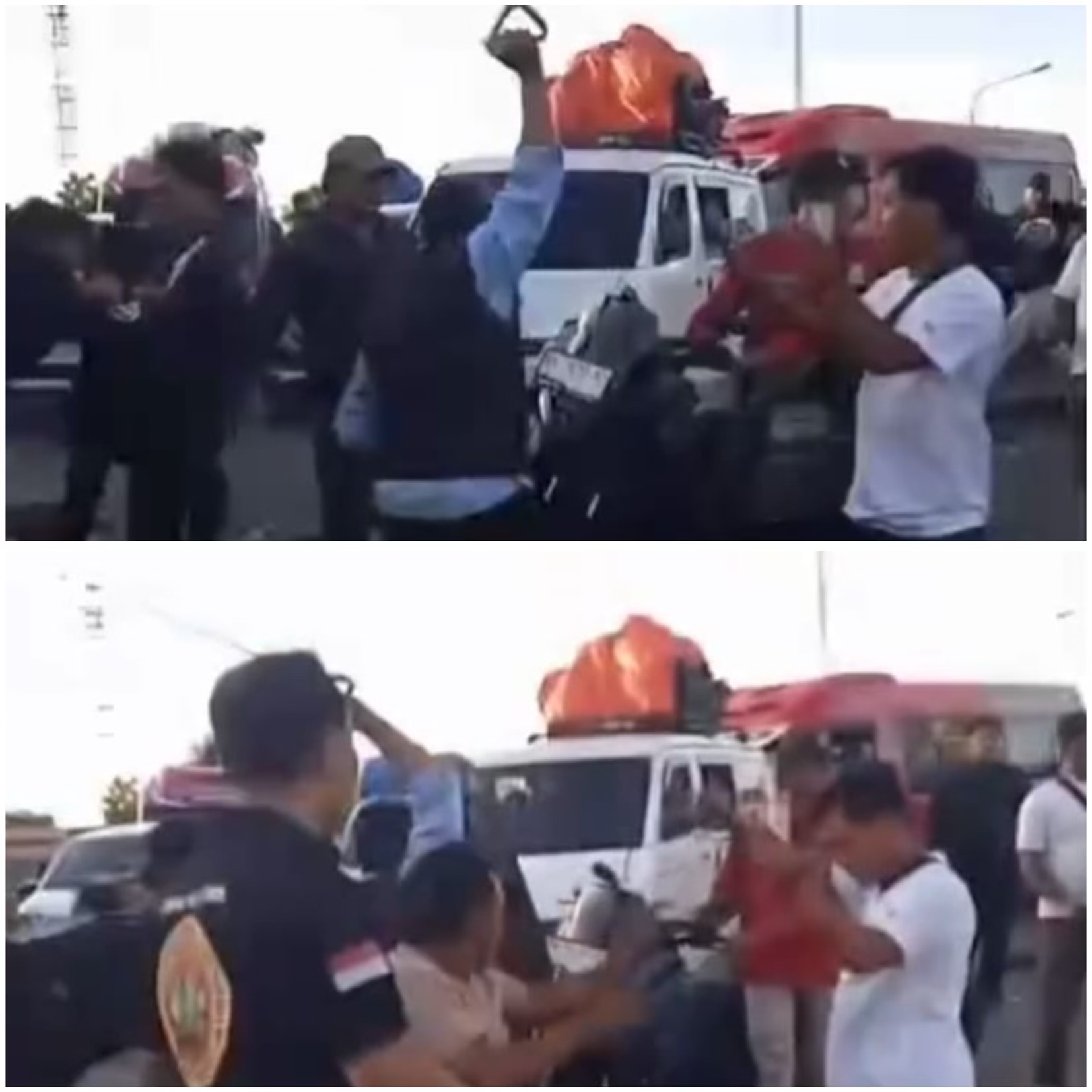 Namun, terdapat tiga unit kendaraan yang memaksa untuk masuk lebih dahulu. Ketiga kendaraan tersebut diduga merupakan travel gelap.