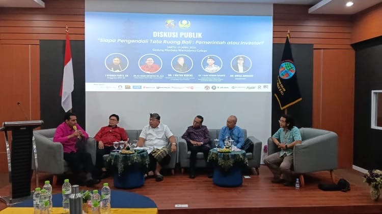 Wacanabali.com, Denpasar – Ikatan Wartawan Online (IWO) Provinsi Bali bersama Fakultas Ilmu Sosial dan Politik (FISIP) Universitas Warmadewa menggelar diskusi publik bertajuk “Siapa Pengendali Tata Ruang Bali: Pemerintah atau Investor?” di Gedung Merdeka Warmadewa College, Sabtu (11/4/2026).