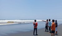Jembrana - Diterjang ombak sebuah banana boat terbalik di Pantai Banjar Anyar Tembles, Desa...