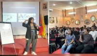 Kolase foto: Narasumber dari LSPR Bali Andyna Sari, M.Ikom (kiri) memaparkan materi dalam kegiatan...