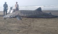 Jembrana - Kehebohan warga pesisir terjadi ketika seekor Hiu Tutul raksasa ditemukan terdampar di...