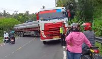 Jembrana - Diduga tak kuat nanjak, sebuah truk diperkirakan sepanjang 40 feet mengangkut tiang...